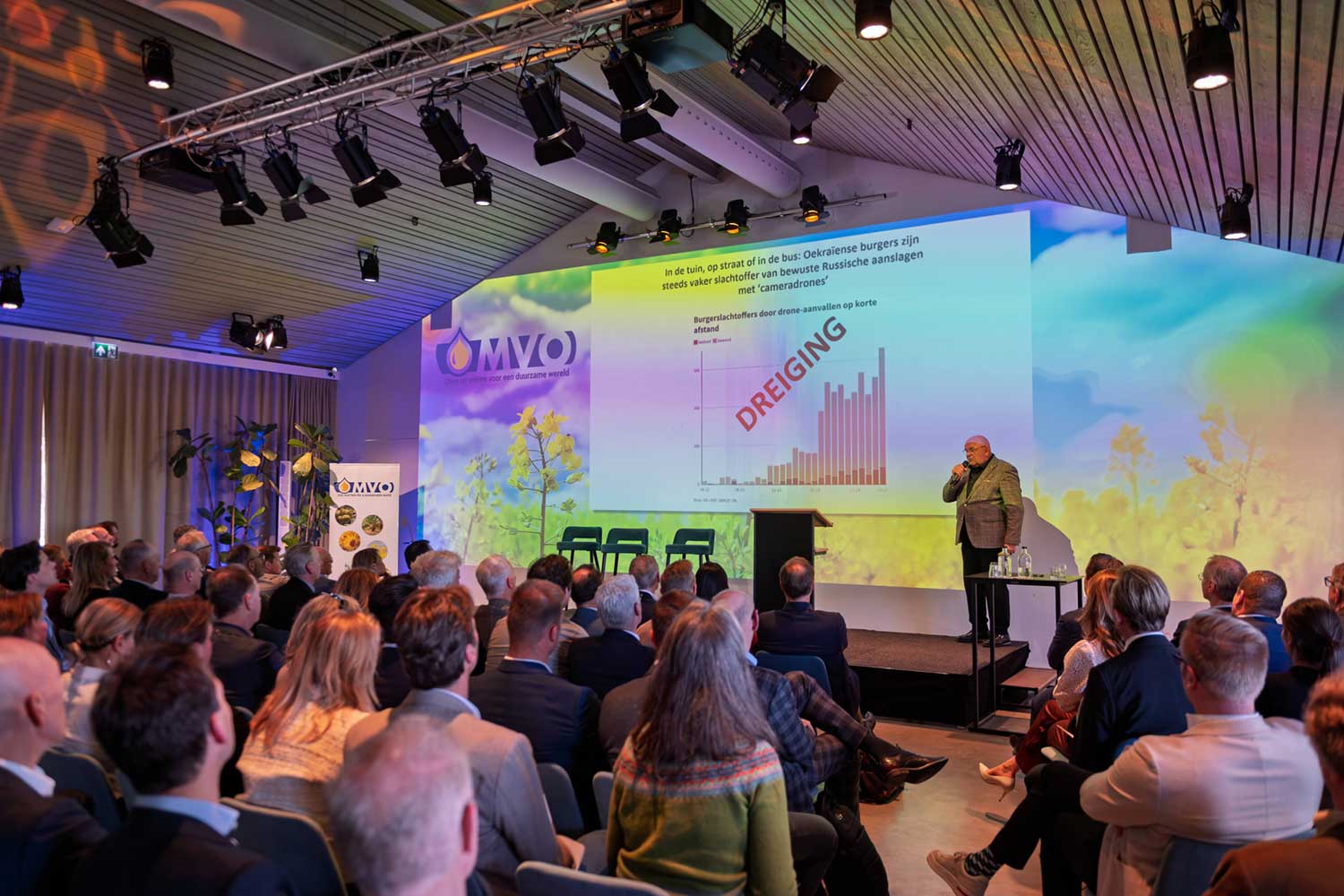 In de daaropvolgende discussie met de zaal werd duidelijk dat deze thema’s ook breed leven in de MVO-sector. Zo kwam onder meer naar voren hoe sterk voedselzekerheid samenhangt met energievoorziening en prijsontwikkelingen, en hoe afhankelijk internationale ketens zijn van stabiele handelsrelaties. Ook het spanningsveld tussen toenemende regelgeving en het behoud van een aantrekkelijk investeringsklimaat werd nadrukkelijk benoemd. Tegelijkertijd klonk er ook vertrouwen door: juist in een veranderende wereld liggen er kansen voor een sector die wendbaar is en snel weet in te spelen op nieuwe omstandigheden.
