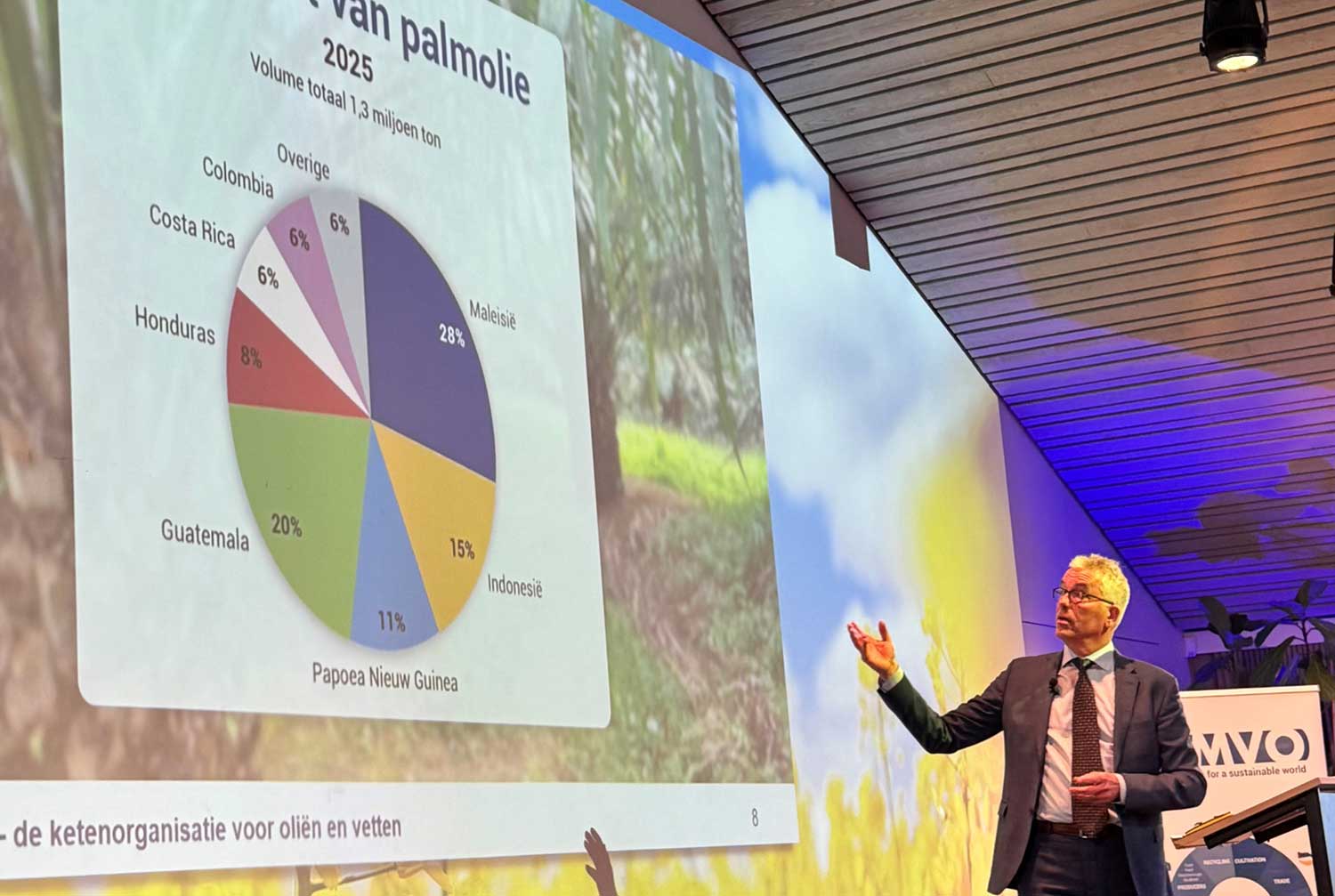 Frans Claassen, directeur van MVO, opende het netwerkevenement met een toelichting op de handel van MVO-producten in 2025. In zijn verhaal schetste hij hoe de sector opereert in een wereld waarin geopolitieke spanningen en veranderende handelsverhoudingen steeds nadrukkelijker doorwerken in internationale handelsstromen.
