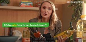 Olijfolie of zonnebloemolie, arachideolie of wokolie... In de winkel vind je een ruim aanbod. Het kan dan soms lastig zijn om te weten welke olie je het beste kan kiezen. Daarbij maakt het ook een verschil of je de olie verhit of koud gebruikt. Pascalle Stijger (Voedingscentrum) vertelt er in de video meer over: ‘Gebruik geen extra vierge olijfolie om te verhitten, daar kunnen schadelijke stoffen bij ontstaan. Kies een olie die goed tegen verhitting kan zoals zonnebloemolie of arachideolie. Vaak staat het op het etiket vermeld. Kortom; kies voor oliën met veel onverzadigd vet zoals olijfolie of zonnebloemolie en let er daarnaast op dat je een olie kiest die goed tegen verhitten kan.’