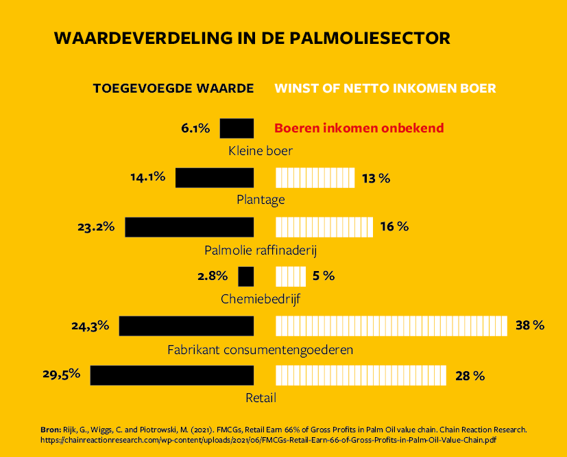 De palmolieketen raakt veel belanghebbenden – ook in Europa, waar we welliswaar minder maar nog steeds grote hoeveelheden palmolie gebruiken. Tegelijkertijd verdienen boeren vaak geen leefbaar inkomen. Wij vinden dat, als wij palmolie gebruiken, we er ook voor moeten zorgen dat boeren daarvan kunnen leven.