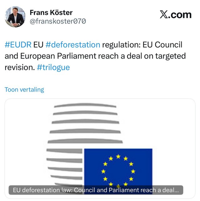 Politiek akkoord aanpassing en uitstel EUDR